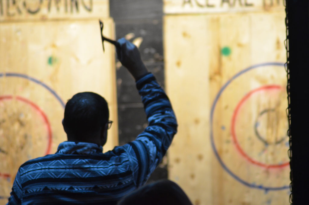 Ace Axe Throwing is located on the main floor of The Bank on 8th. Axe throwing sessions are either 1 or 2 hours. Your group will be paired with one of our axe coaches who will briefly guide you through a set of safety rules and train each thrower 1-on-1. The coach will assist you in improving your technique throughout your session. You are sure to be sticking axes in no time.